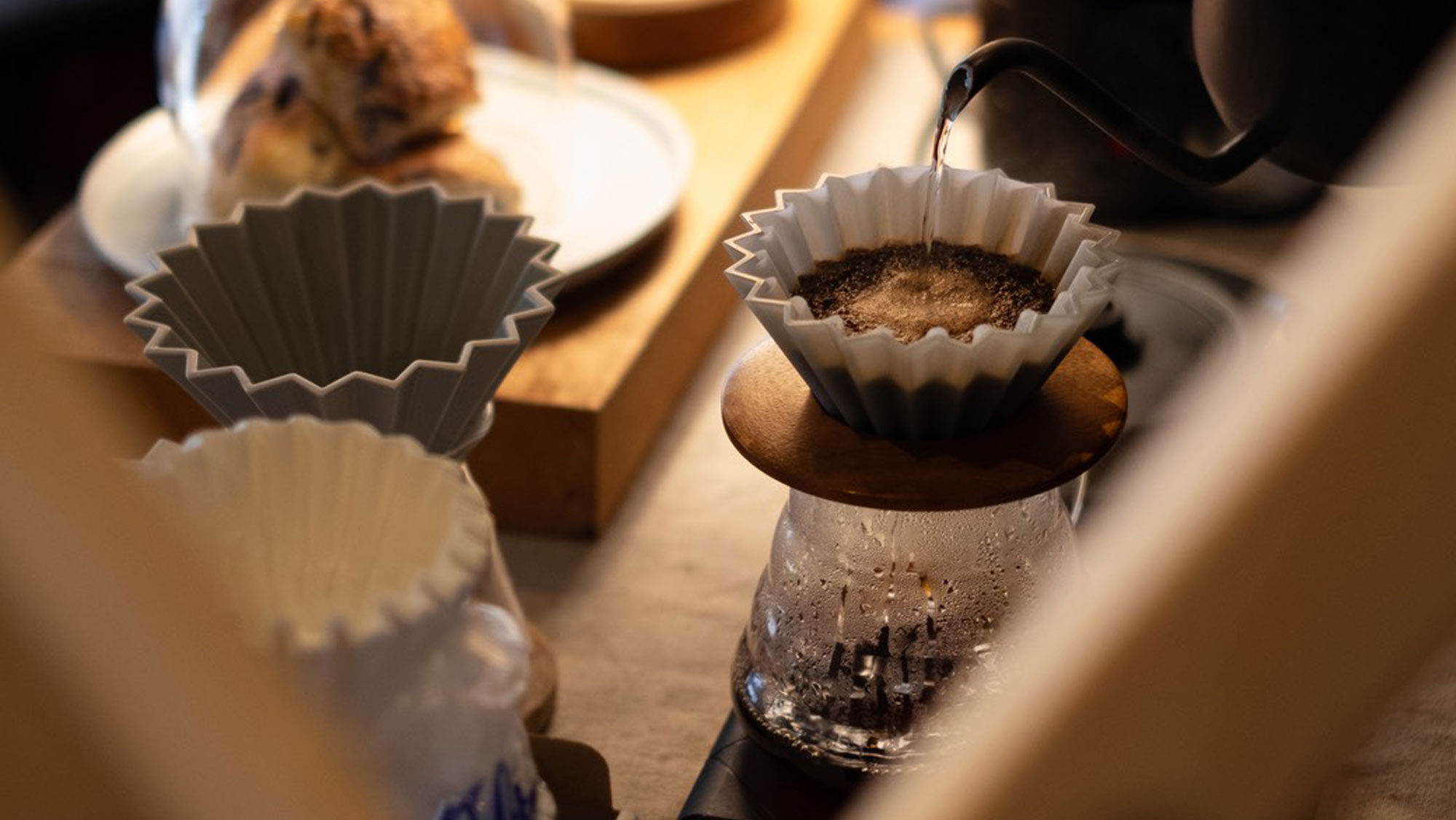 使用日本陶器品牌 ORIGAMI 製作的濾杯沖煮,品嚐咖啡的純粹風味。