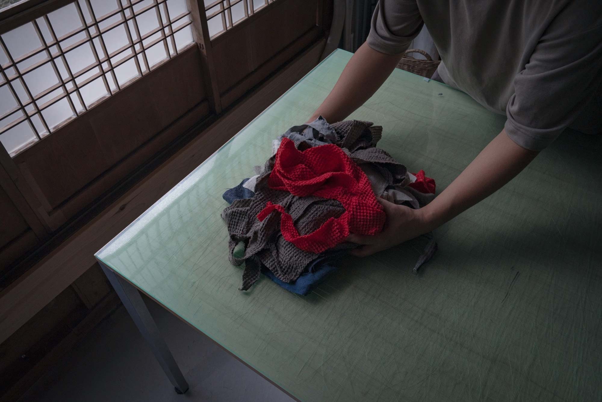 此外,在子系列餘布工藝中,我們運用裁製後留下的布料,製作衣物與生活小物。